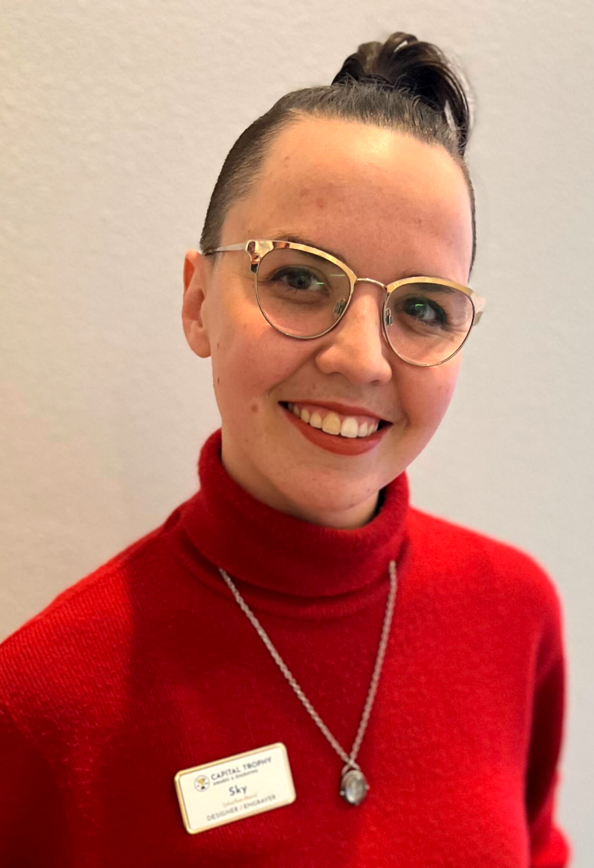 Sky plays a key role at Capital Trophy as the primary point of contact for website and email orders, handling much of the order processing, estimating, and customer communication. She regularly assists customers via phone, email, and website chat, helping guide projects from initial inquiry through final approval.